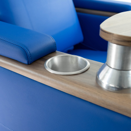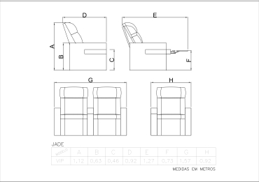 BRAÇOS: Fixo ou móvel, porta copo em alumínio, e com acabamento estofado ou em madeira de lei envernizado ou formicado