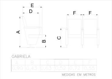 Encosto: Fixo, espuma injetada, encosto e contra capa revestidos em uma única capa.