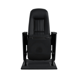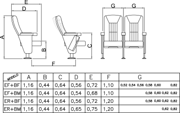BRAÇOS: Fixo ou móvel, porta copo em polipropileno, braços injetados, em madeira de lei envernizado ou formicado