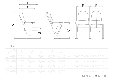 BRAÇOS: Fixo ou móvel, porta copo em polipropileno, em madeira de lei envernizado ou formicado