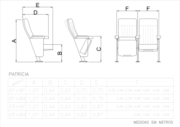 BRAÇOS: Fixo ou móvel, porta copo em polipropileno, em madeira de lei envernizado ou formicado
