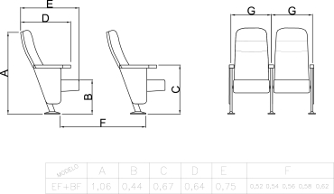 ASSENTO: Fixo ou autorretrátil, espuma injetada, contra capa em polipropileno texturizado